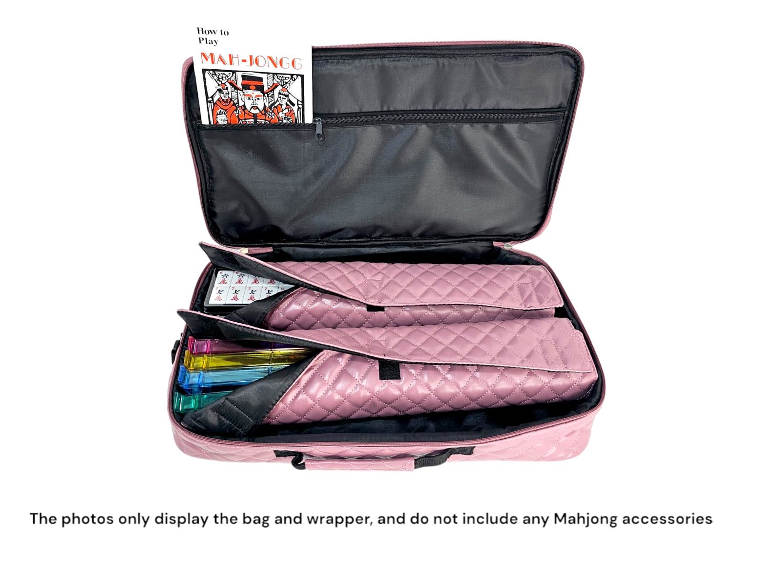 Product description: Elevate your Mahjong carrying experience with this elegant quilted PU leather Mahjong carrying bag. Combining durability and convenience, this bag features a sleek quilted exterior and a spacious, well-organized interior. Made from soft yet durable PU leather, it ensures your Mahjong set is securely protected. The bag includes a zippered storage pocket for organizing combo racks or standard racks Mahjong tiles with tile trays, and more. A hidden compartment is also designed to hold additional accessories, such as extra tiles, dice, wind indicators, play coins, and an instruction manual. Equipped with sturdy handles and an adjustable shoulder strap, this bag provides comfort for carrying, whether you?re heading to a casual game, a tournament, or traveling. Product Features: Premium PU Material: Made with high-quality PU leather and designed with an elegant quilted pattern for a stylish look. Spacious Interior: Offers ample space to store a full Mahjong set, including tiles, racks, and other accessories. Zippered Storage Pocket: Features a secure zippered pocket to neatly organize accessories like extra tiles, dice, wind indicators, play coins, or other small items. Comfortable to Carry: Comes with durable handles and an adjustable shoulder strap, providing multiple carrying options. Protective Design: Lightweight yet sturdy soft-shell construction ensures your Mahjong set stays well-protected during transport. Combining practicality and style, this bag is the perfect accessory for every Mahjong enthusiast!