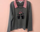 C&K Designs Cat Heart Sweater Long Sleeve red Gingham Collar Gray SIZE XL