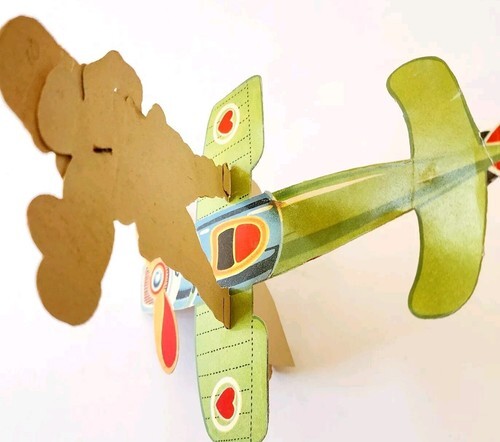 - C1920-30 Valentines Day Stand Up Pop Up Greeting Card Aviation Plane DWNad1