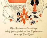 C1940s Christmas Greeting Card Used Embossed Red Black Holly Mistletoe E85G