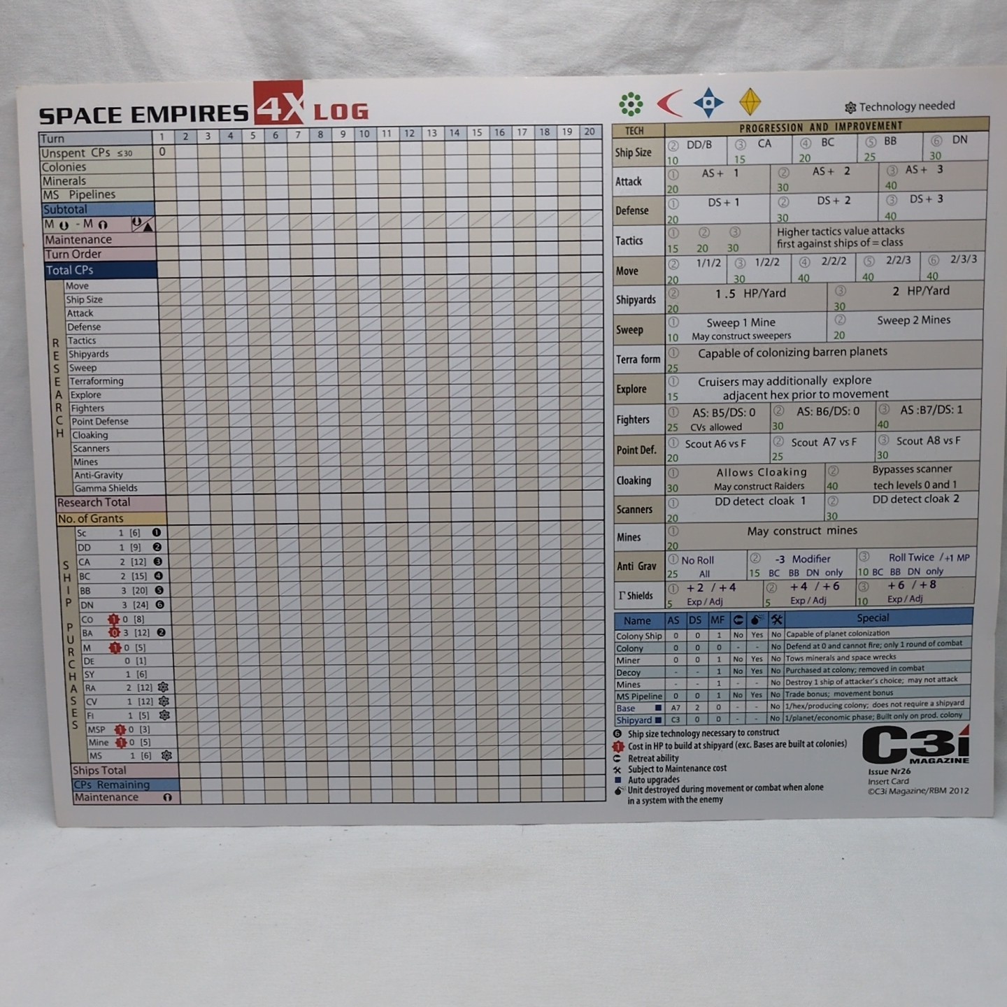 C3i Magazine Nr26 - Space Empires 4X Redesigned Log Sheet