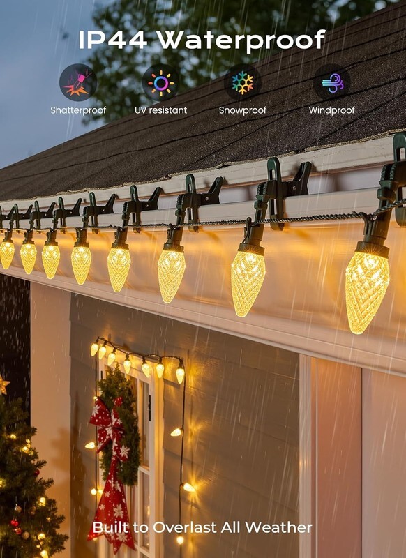 ?Shatterproof IP44 waterproof?Made with tough, high-quality materials, these outdoor christmas decorations are built to last. The casing and wire stands up to rain, snow, bumps, and even strong sun ? so no yellowing or brittleness over time. These are built tough to stay bright season after season.