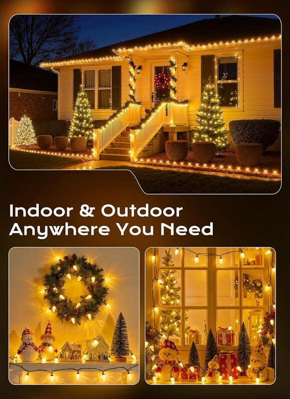 ?Dazzling Indoor Outdoor Christmas Decorations?Unlike other strawberry string lights, This vintage C9 christmas lights features a fuller, more rounded shape. The diamond-like strawberry-shaped casing refracts light into beautiful, dazzling rays, creates a warm and wonderful holiday glow, perfect for both indoor christmas lights and outside christmas lights.