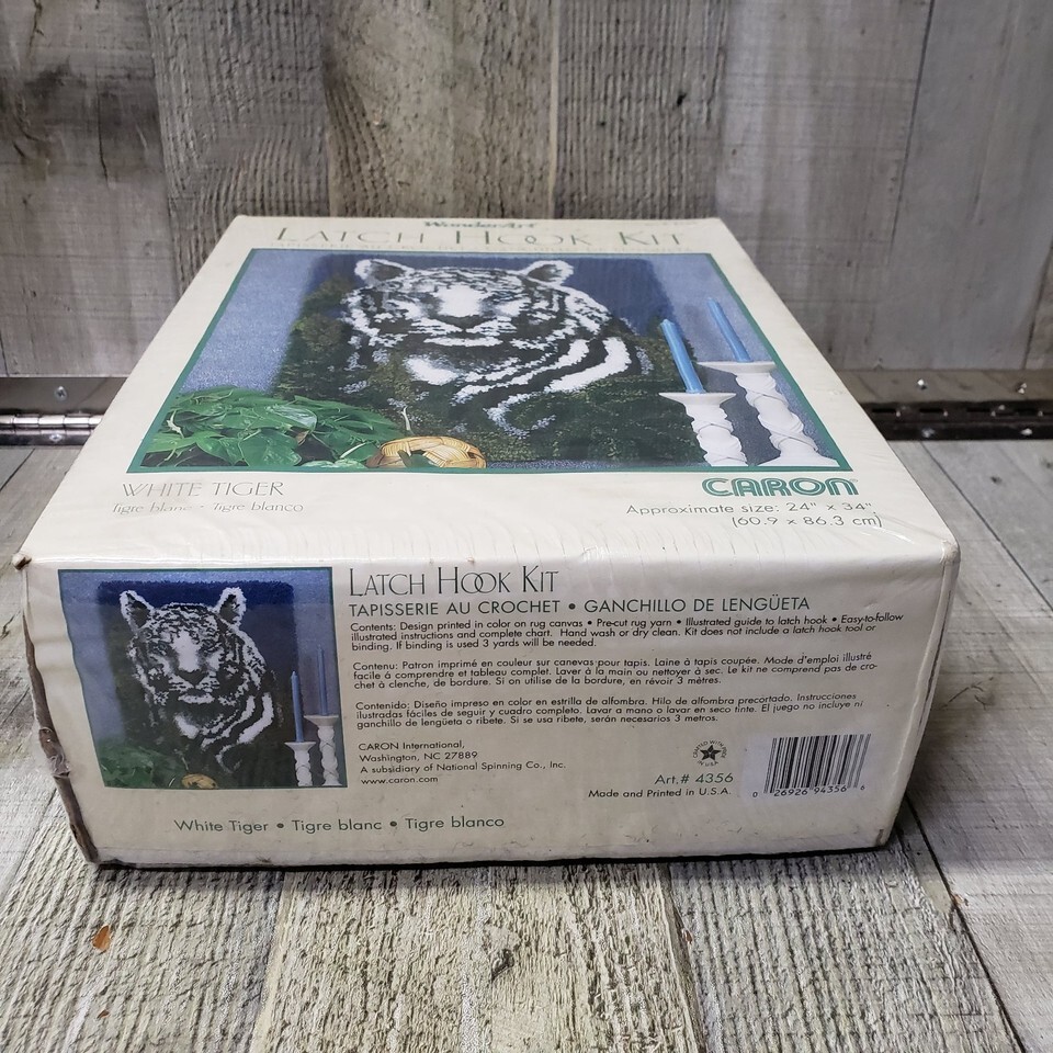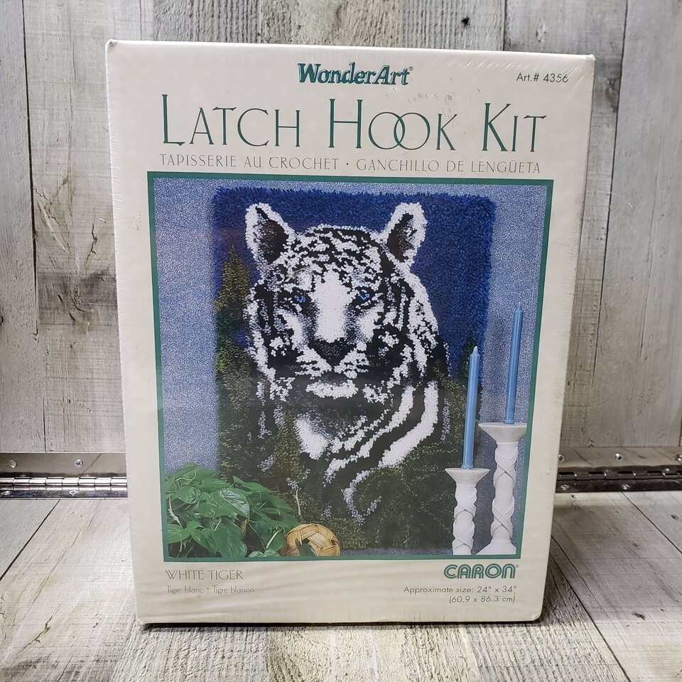 - CARON White Tiger Latch Hook Kit 24" x 34" WonderArt #4356 NEW & SEALED
