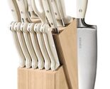 - CAROTE 14-Piece Stainless Steel Knives ~ Wooden Block ~ Ergonomic Handle ~ WHITE