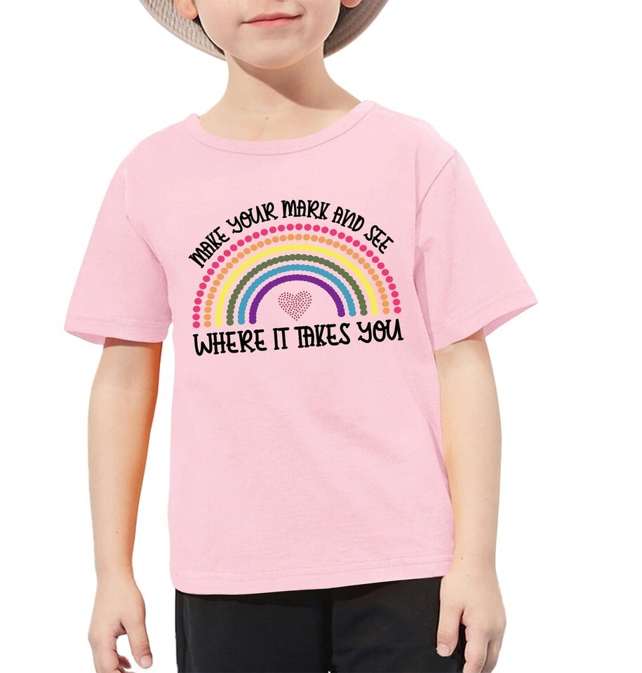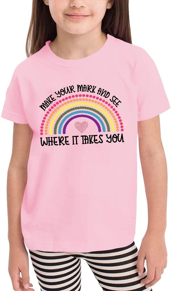 Special Design: Polka dot kid T-shirt with colorful polka dot and rainbow pattern, the design concept of "Make your mark and see where it takes you" encourages children to use their imagination and stimulate their creativity and color perception by wearing this creative T-shirt, while enjoying the fun of the holiday season.