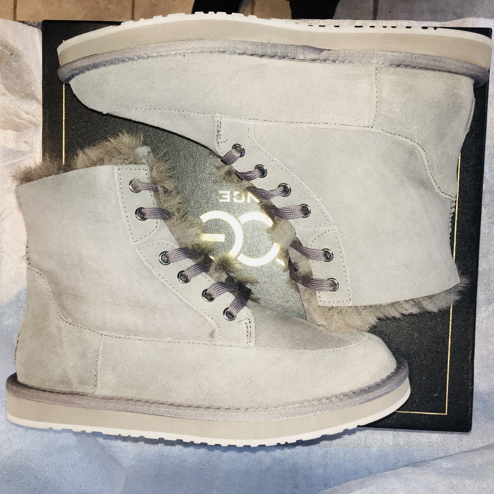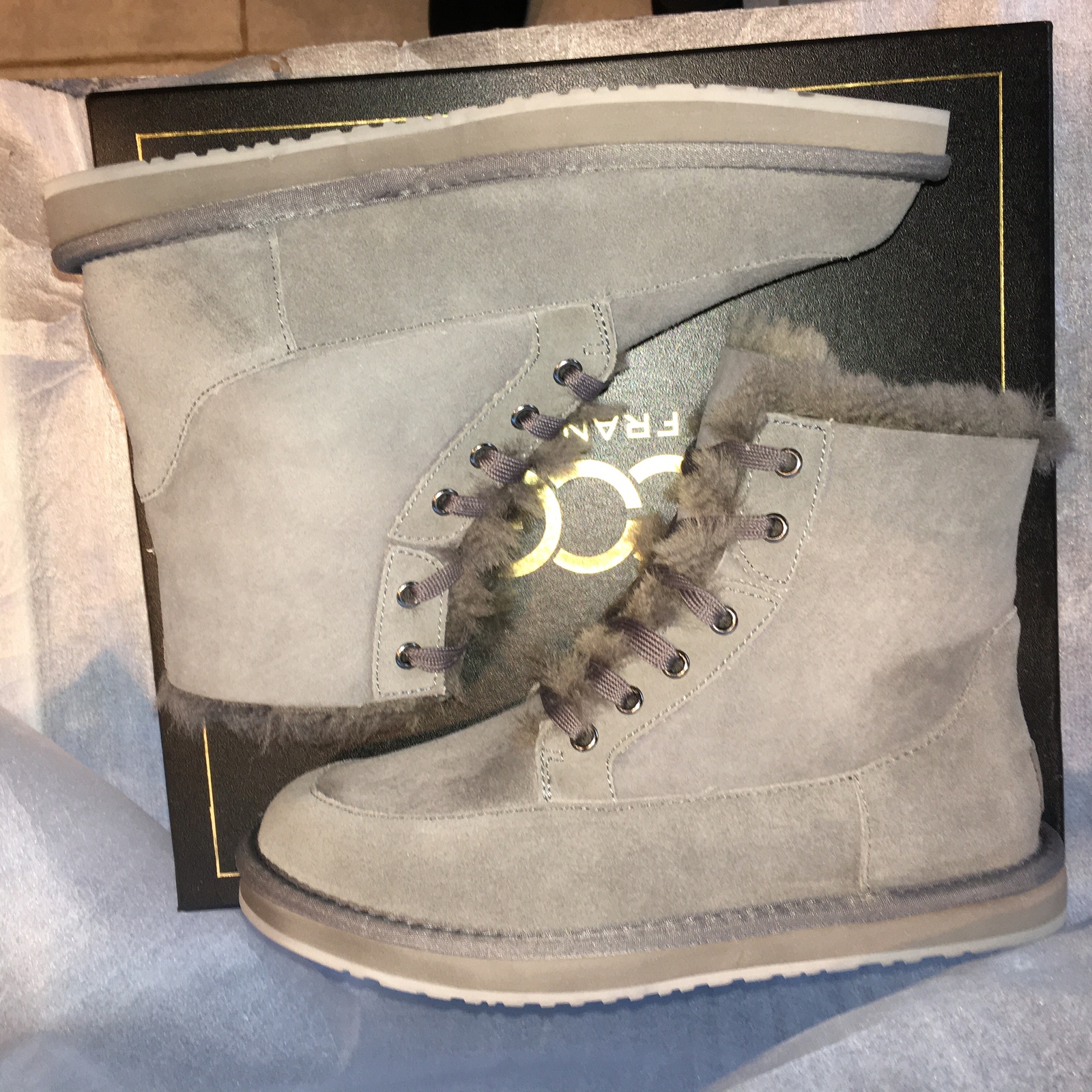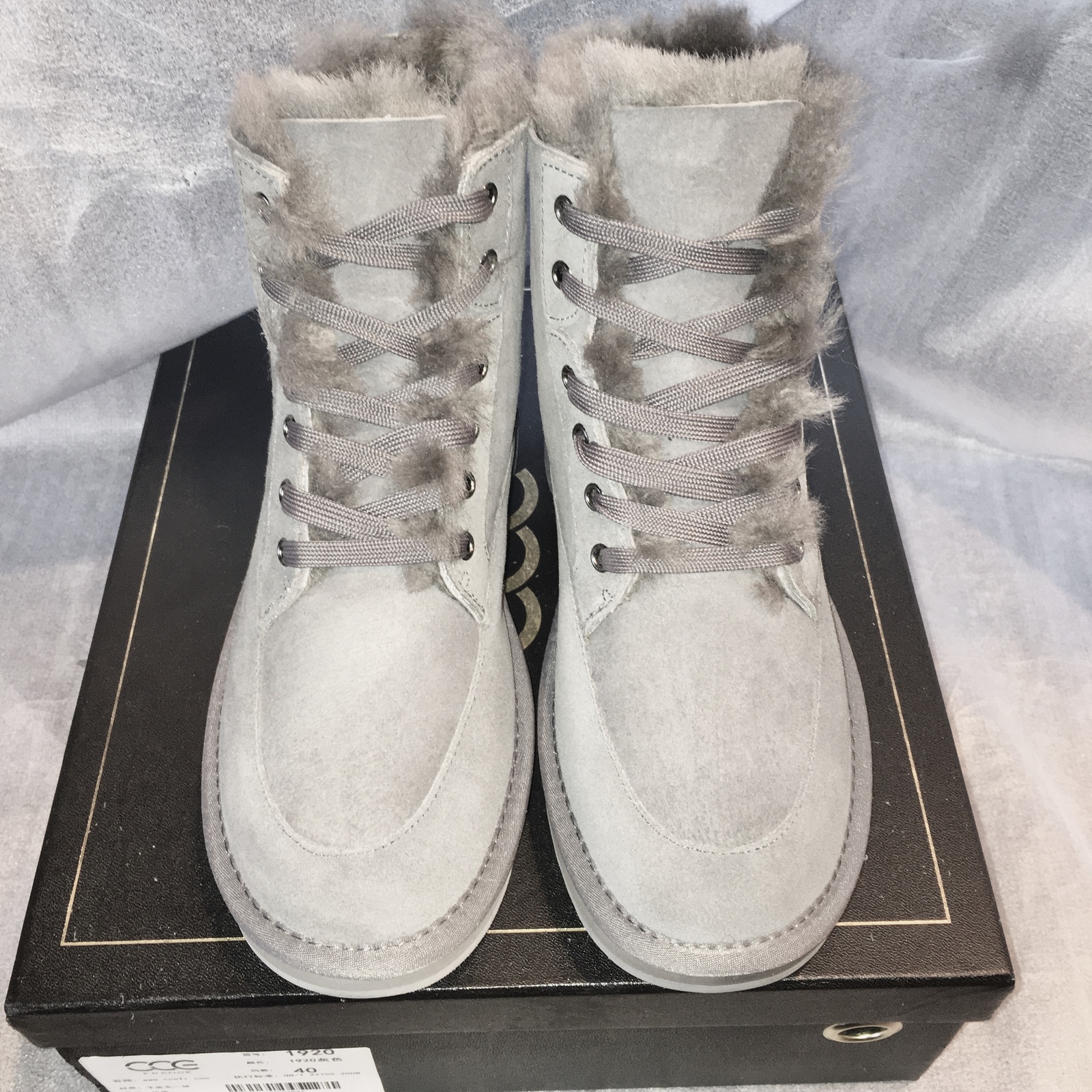 - CCE France Grey Sheepskin Laceup Boot, Style 1920, Women Size 9 (EU-40), NEW