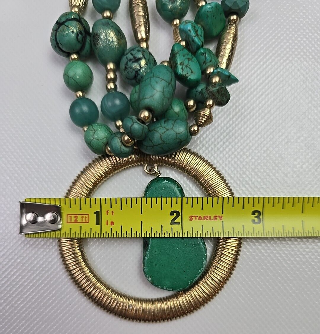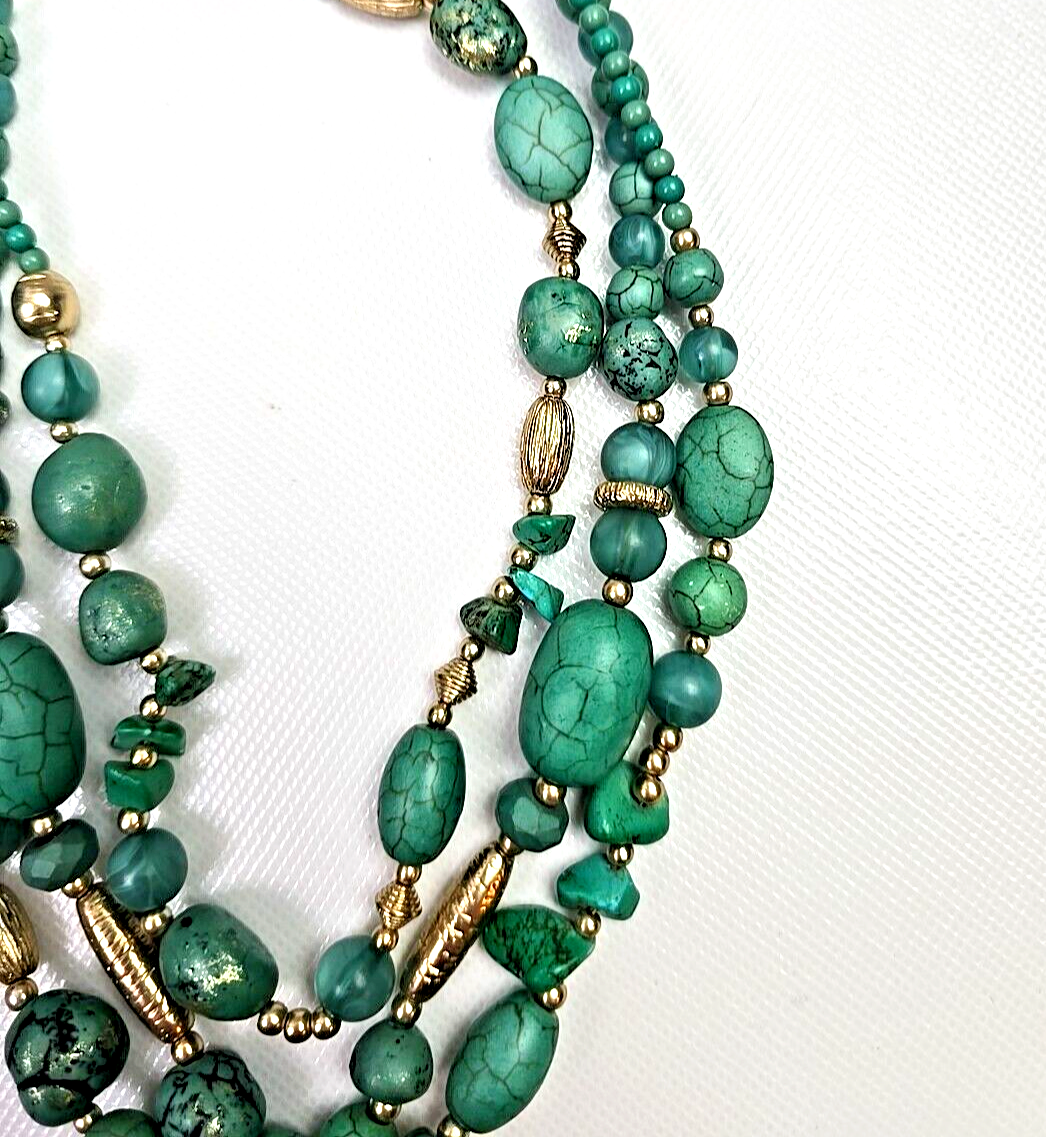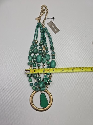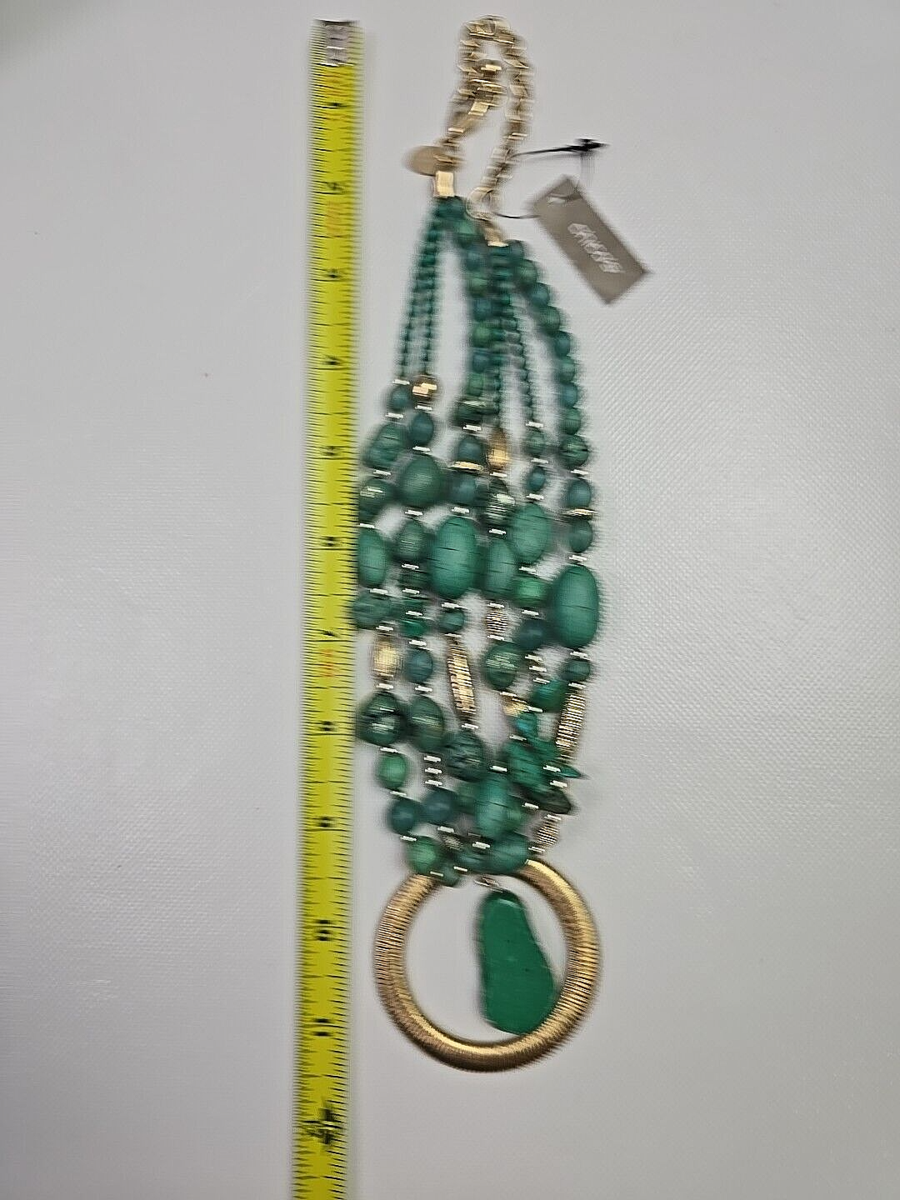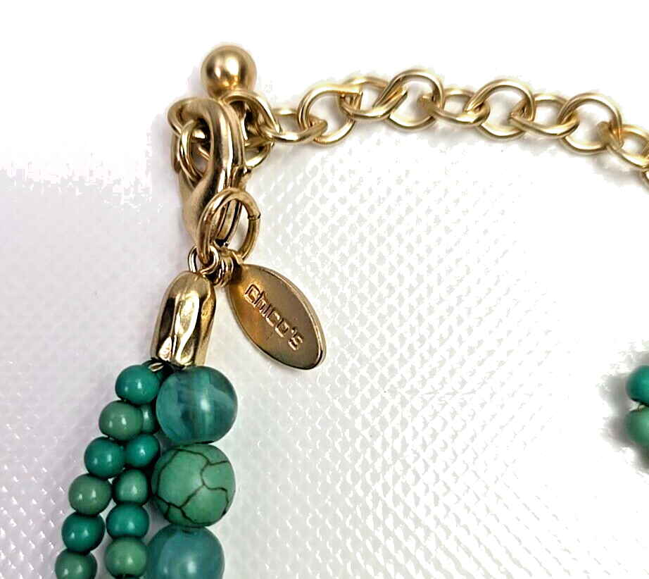 - CHICO'S NWT Multi-Strand Turquoise Gold Circle Pendant Statement Neclace