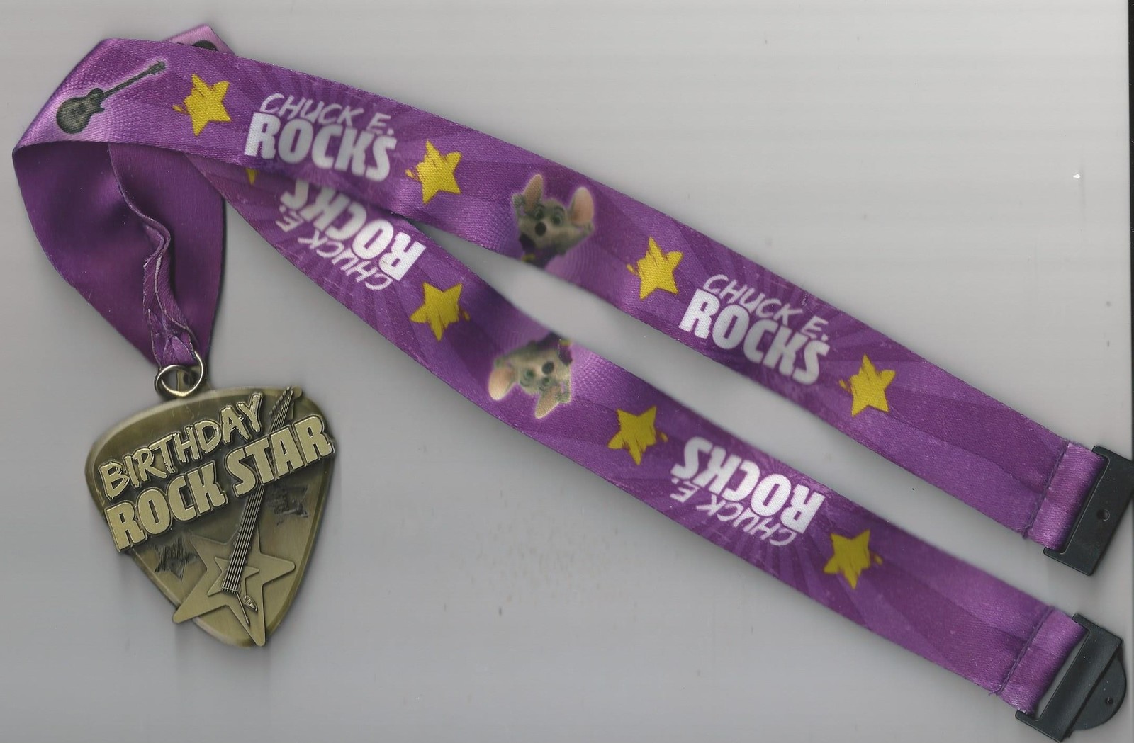 - CHUCK E CHEESE Birthday Rock Star Guitar Pick Medal Award Medallion Necklace
