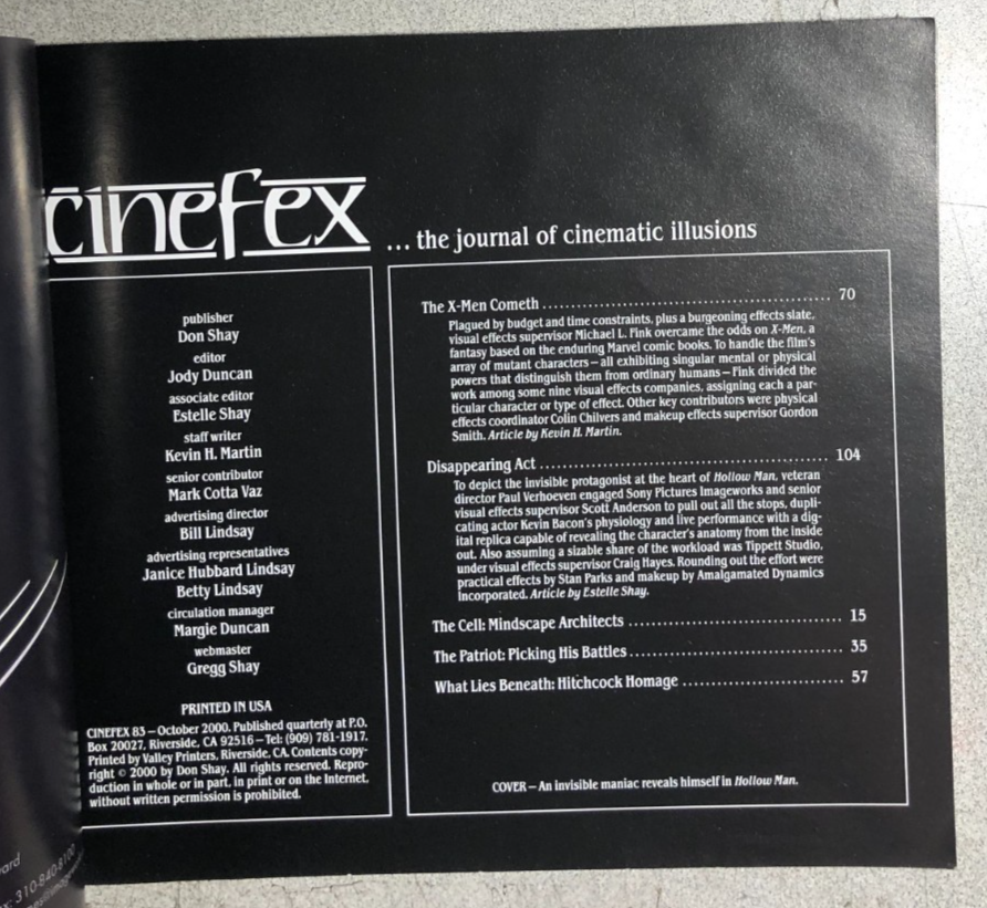 - CINEFEX #83 (2000) special effects film magazine Hollow Man X-Men