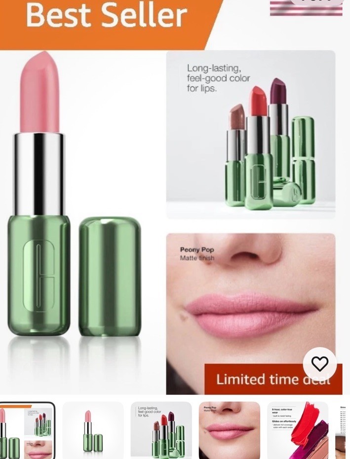 - CLINIQUE Pop Longwear Lipstick | Long Lasting, Satin, Matte + Shine 13 Peony POP