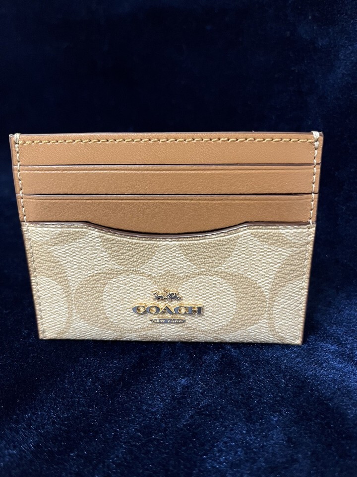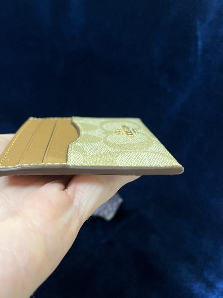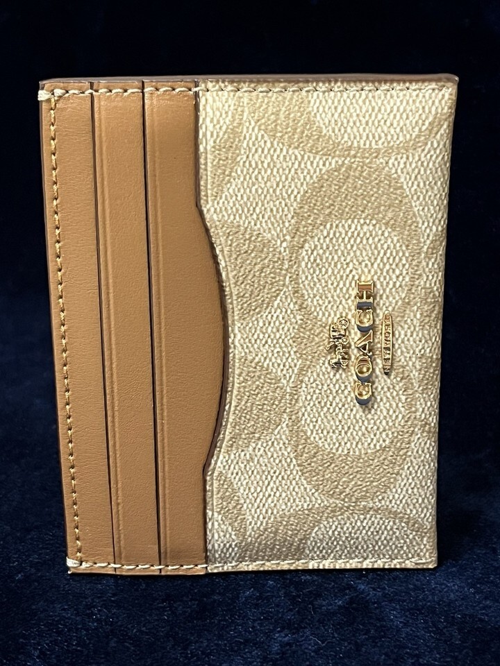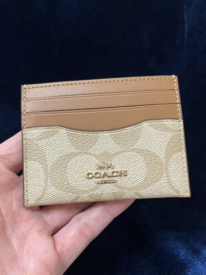 - COACH Slim ID Card Case In Signature Canvas Light Khaki Light Saddle CH415