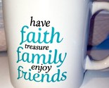 - COFFEE COCOA mug Have Faith Treasure Family Enjoy Friends White and Green