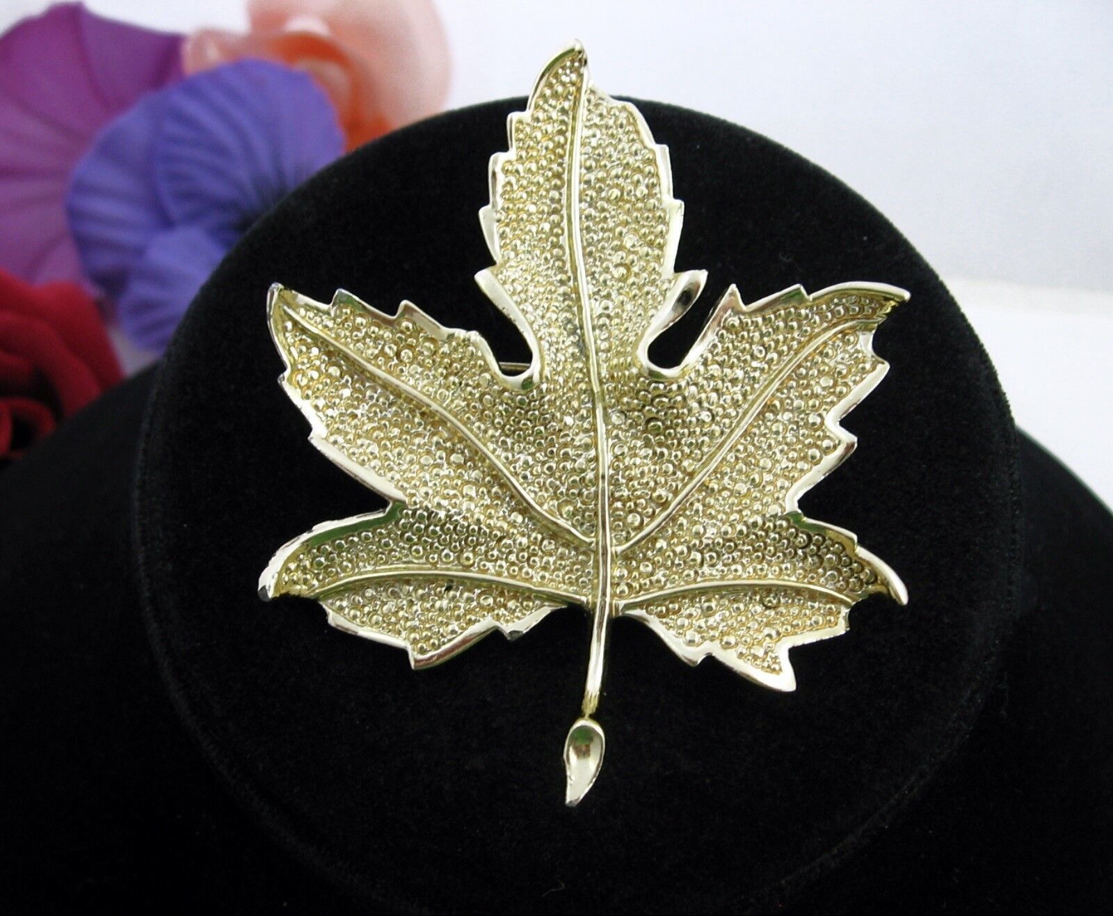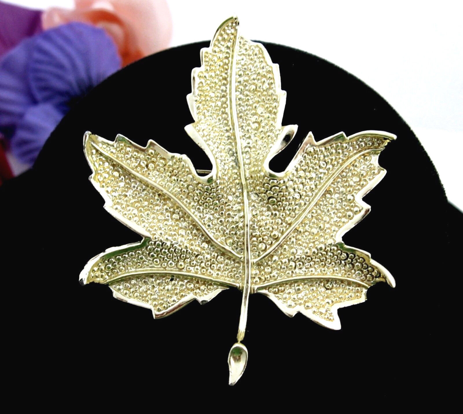 - CORO MAPLE LEAF Vintage PIN Brooch Goldtone Knobby Bumpy Finish 2 1/2" Broach