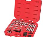 83-piece 1/4-inch and 3/8-inch Drive Mechanics Tool Set featuring mechanic socket set comes equipped with 72-Tooth ratchets, a broad assortment of drive tools, and a rugged blow mold case. This case is constructed with metal hinges for separate sets, and the dimensions are specifically designed to fit into CRAFTSMAN metal storage boxes for easy organization.