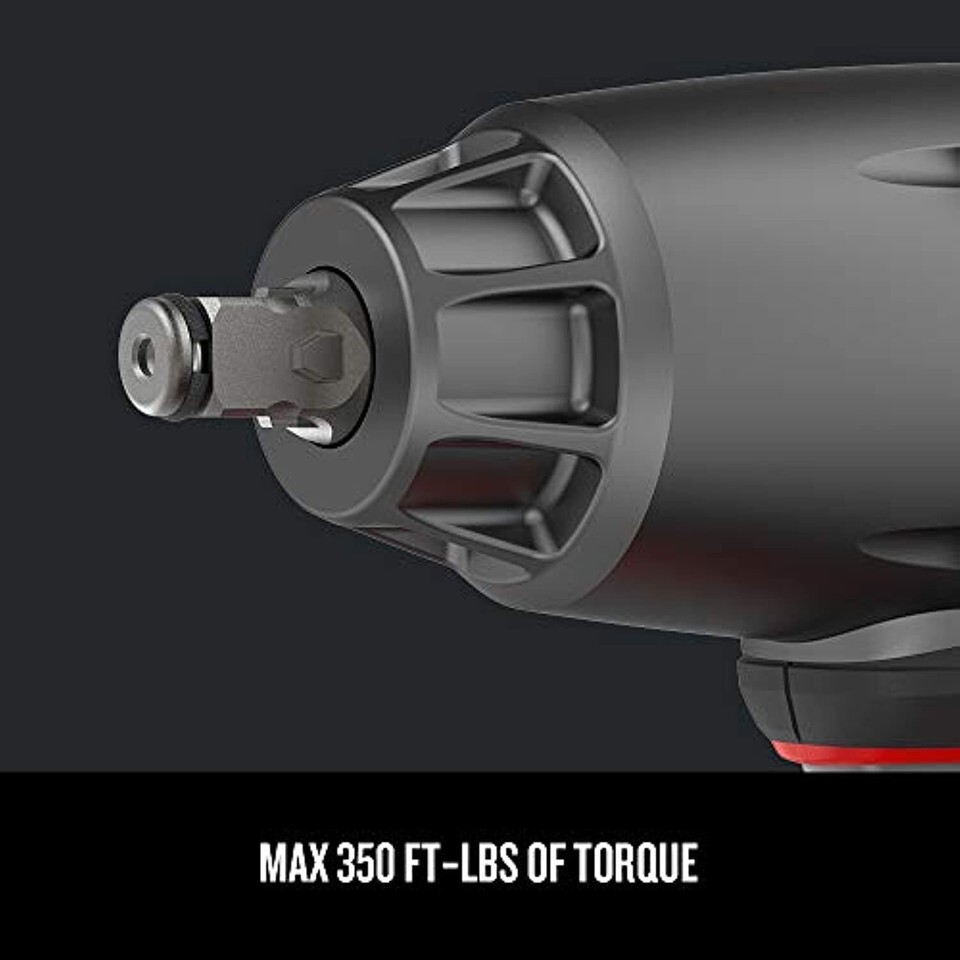 The CRAFTSMAN V20 1/2 in. Impact wrench has a max torque rating of 350 ftlbs for speed and easy of removing large fasteners. The hog ring anvil makes changes quick and easy.