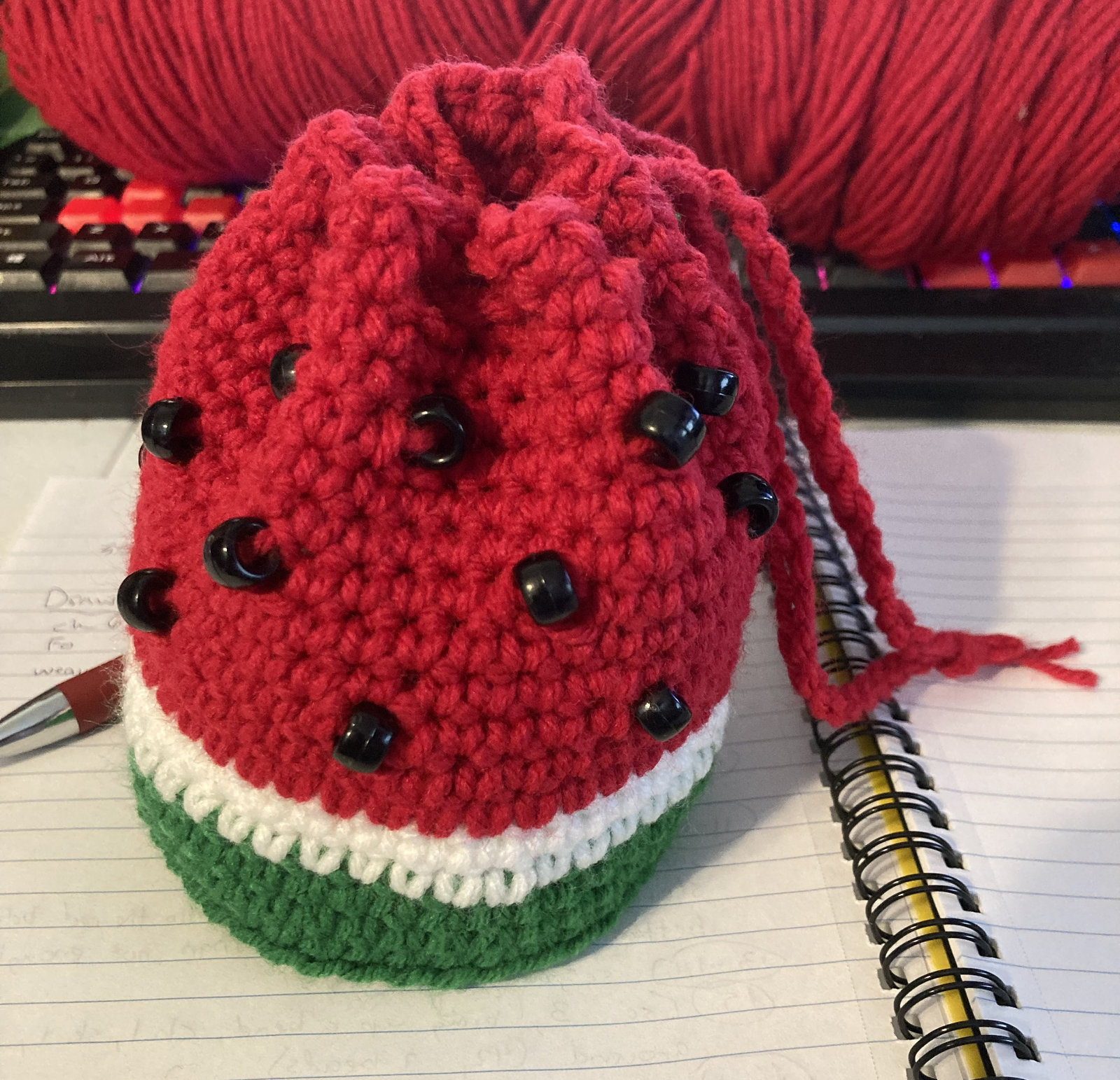 - CROCHET PATTERN - Watermelon Dice Bag / Mini Purse / Pouch / Drawstring Bag