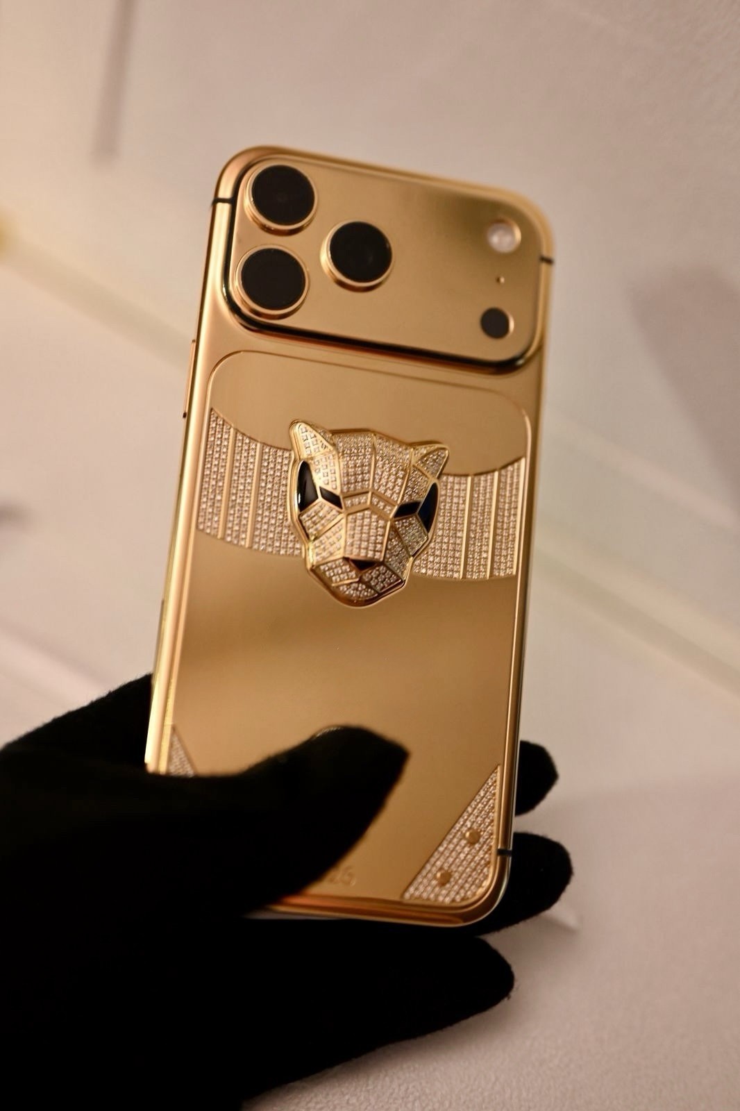 - CUSTOM 24k Gold Apple iPhone 17 Pro Max PANTHER Design Diamond Incrustations 1TB
