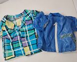 Cabbage Patch kids Plaid geometric 80s 90s collared top shirt & windbreaker blue