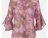 Cabi Sheer Minx Blouse Womens S Button Down Pink Gold Leopard Flare Sleeves