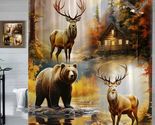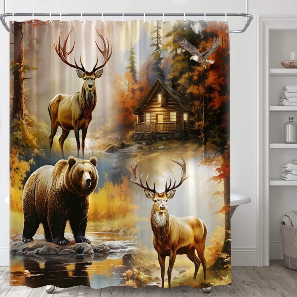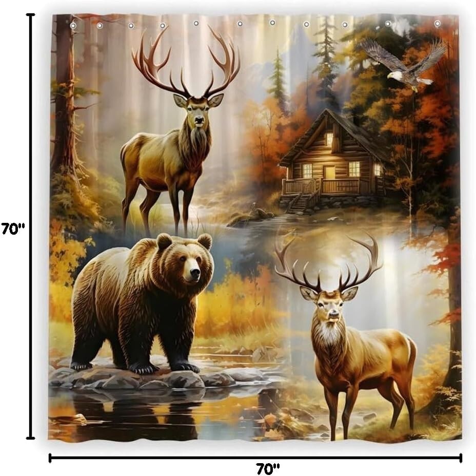 - Cabin Lodge Bear Luminous Deer Woods Fabric Shower Curtain, Modern Rustic, 70x70