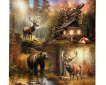 Cabin Lodge Bear Luminous Wildlife Fabric