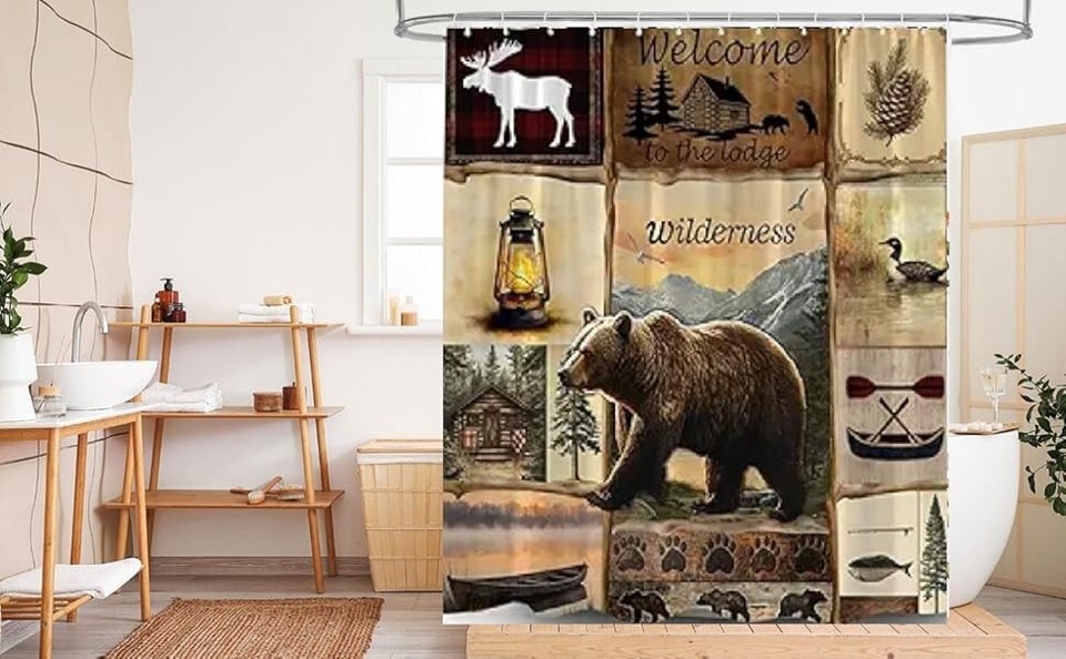and stylish. The shower curtain is decorated with bears, deer, ducks, forest wildlife and more! This adds color, style, and a wild theme to