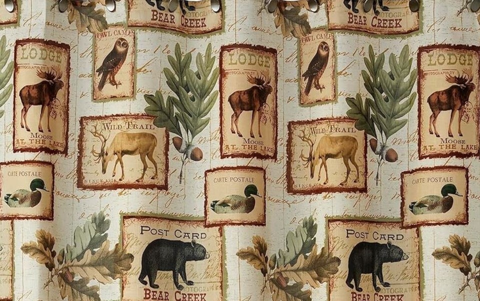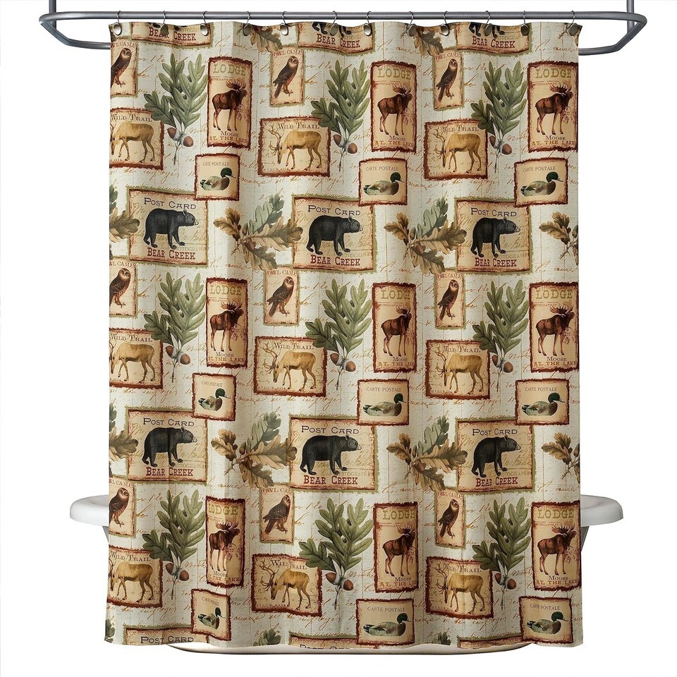 and stylish. The shower curtain is decorated with deer, bears, moose, owls and more! This adds color, style, and a wild theme to