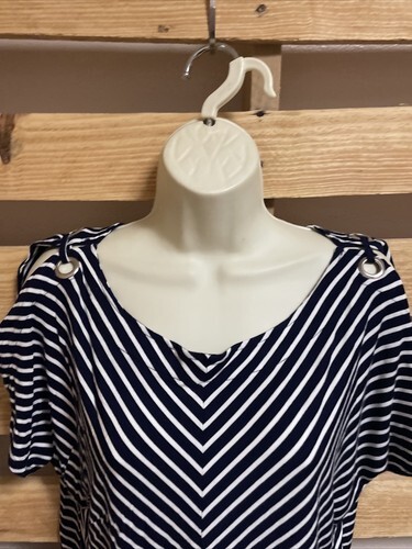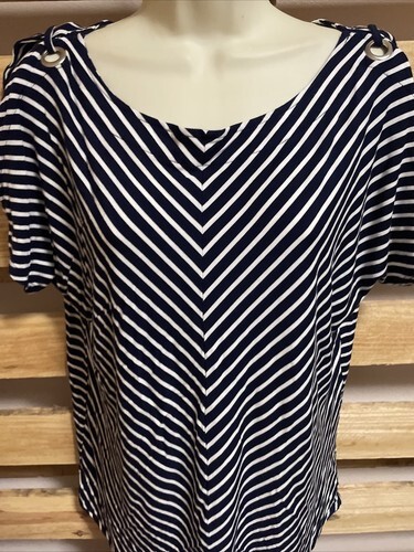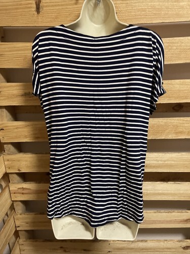 - Cable & Gauge Blue White Striped Blouse Top Woman's Size Large KG JD