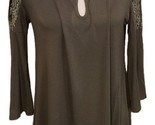 Cable & Gauge Cut off Shoulder Lace Crochet Top Dark Olive Medium