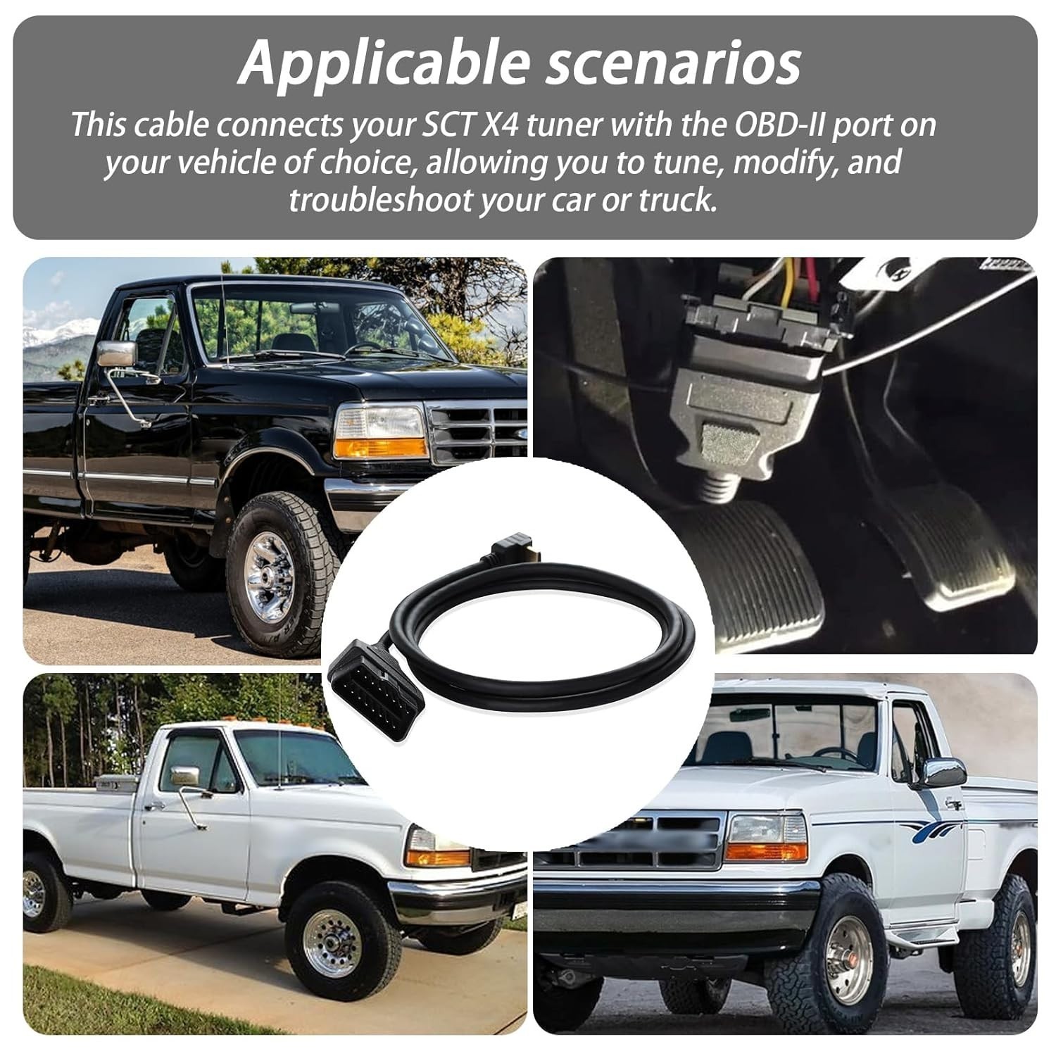 :Easy to install, directly plugged into the OBD2 port.Direct replacement components from SCT x4.OBD2 Cable offers plug-and-play convenience, making it easy to use with your XCalibrator X4 Tuner Scanner.Length 59 inches