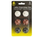 Perfect for organizing messy cords wires or cables this 6-piece cable organizing clips set features small self-adhesive clips made of flexible plastic to keep cables straight and helps prevent tangling. Clips measure approximately 1.125" in diameter.