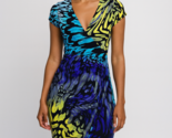 - Cache Womens Abstract Print Bodycon Faux Wrap Dress Sz S Blue Yellow Black