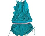 Cacique GREEN Mesh Ruched Bottom Blousy Top Built in Bra Tankini Sporty