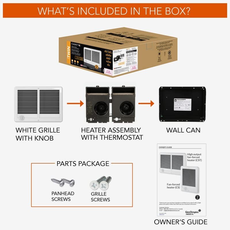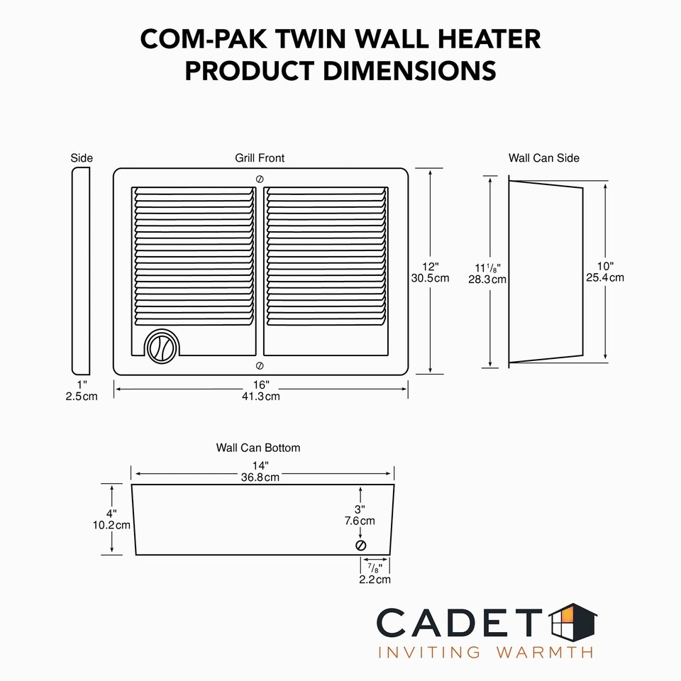 - Cadet Com-Pak Twin Electric Wall Heater Complete Unit with Thermostat (Model: C