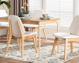 An atmosphere of chic refinement permeates every occasion with the lovely Caelan dining set. Made in Malaysia, this Japandi set includes four chairs and one table crafted from sturdy wood. Each chair features plush boucle fabric upholstered cushions for superb comfort accentuated by the flowing geometry of the frame. The Caelan requires assembly and features a broad rectangular tabletop to comfortably accommodate each member of the table. A simple yet exuberant arrangement, the Caelan dining set elevates any scene.