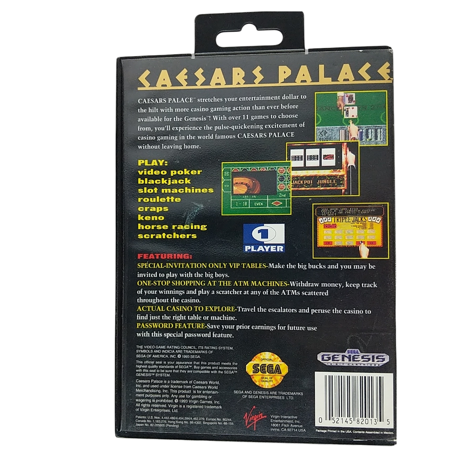 - Caesars Palace (Sega Genesis, 1993) Game Case Manual