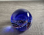 Caithness Blue "United We Stand" American Flag/Ribbons Glass Paperweight