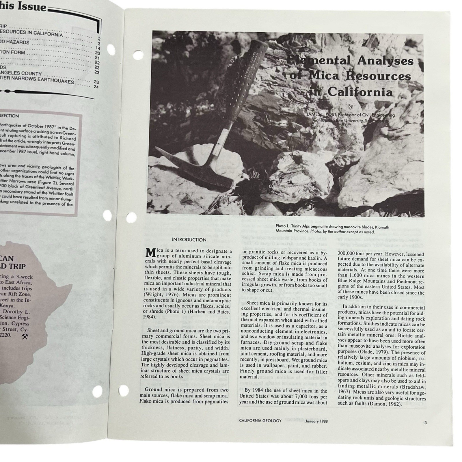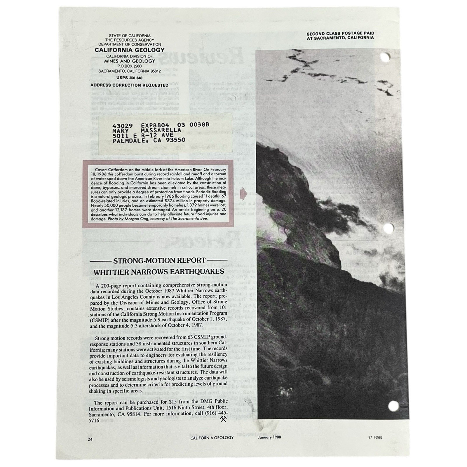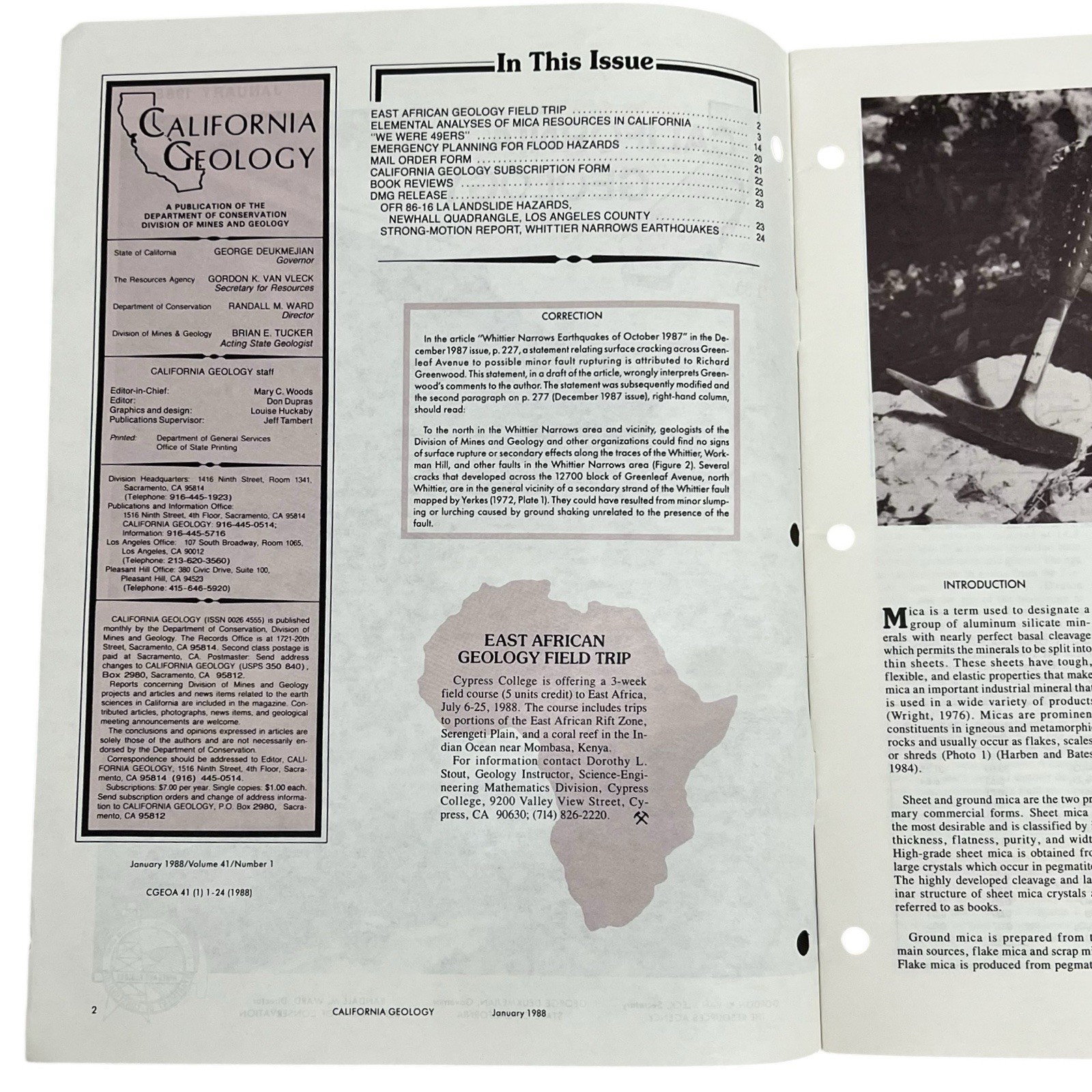 California Geology Magazine Conservation Mines January 1988 Mica Flood Hazards
