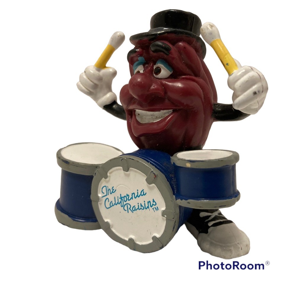 California Raisins Drums Drummer Figure by Calrab Applause 1988, PVC, 3" Tall. Loose and not packaged.