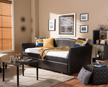 - Callum Brown Faux Leather Arched Back Sofa Twin Daybed w/Roll-Out Trundle
