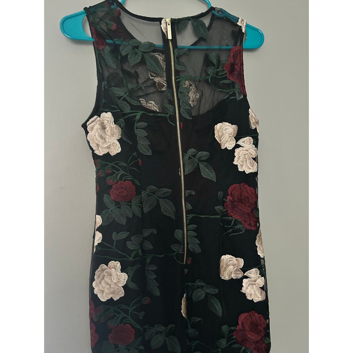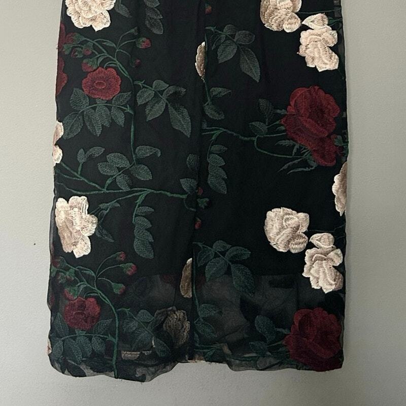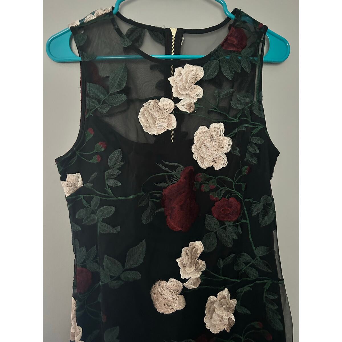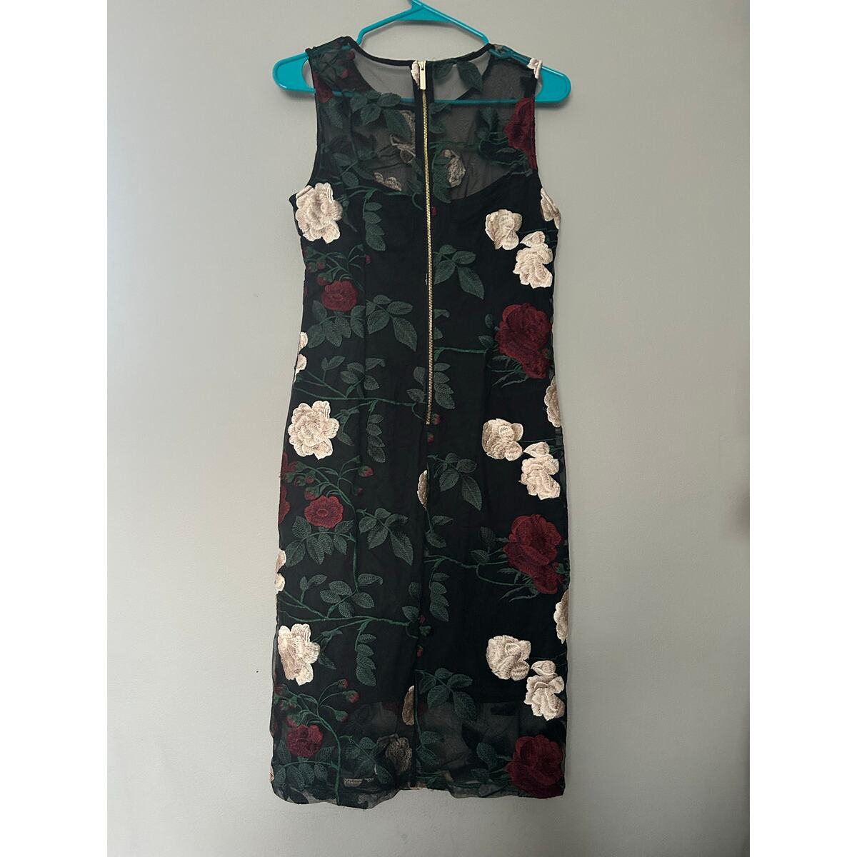 - Calvin Klein Black Floral Embroidered Illusion Sheath Midi Dress Sz 8