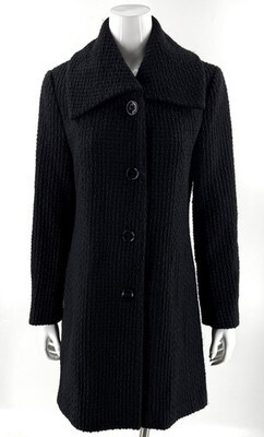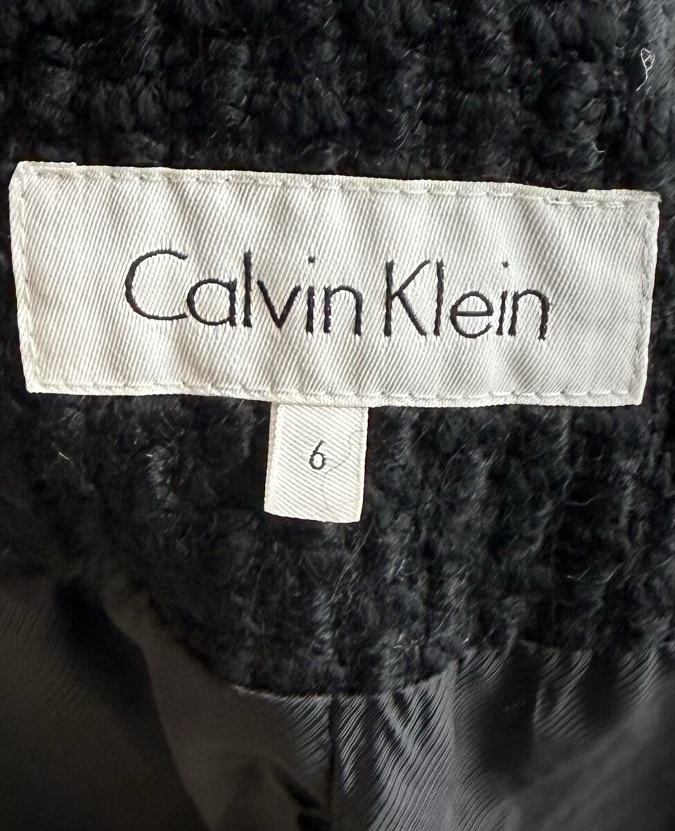 - Calvin Klein Dress Coat Size 6 Black Textures Wool Blend Button Womens