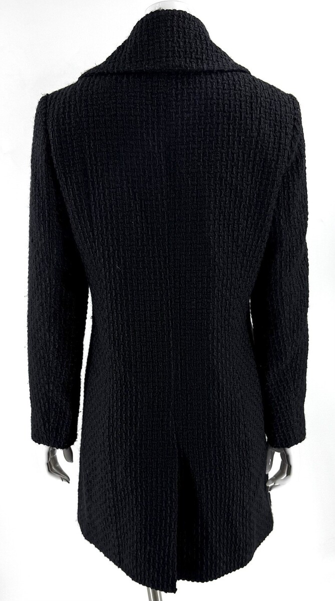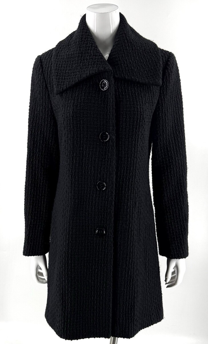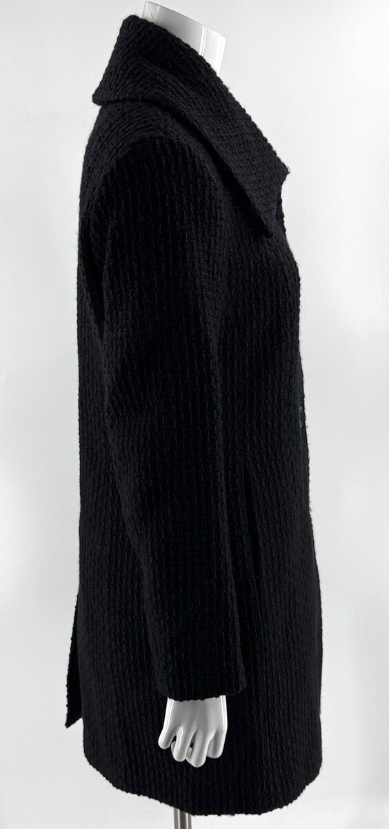 Calvin Klein Dress Coat Size 6 Black Textures Wool Blend Button Womens