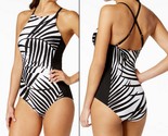 Calvin Klein High-Neck Cross-Back One-Piece Swimsuit Women's Black/White Size 12