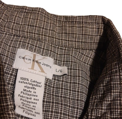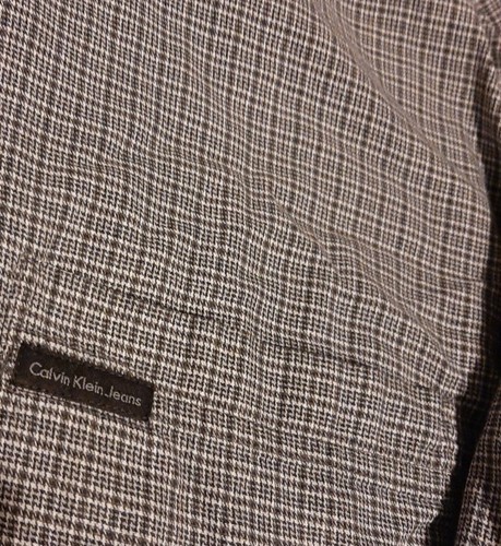 - Calvin Klein Men’s L Blue Gray Plaid Button Up Long Sleeve Casual Shirt