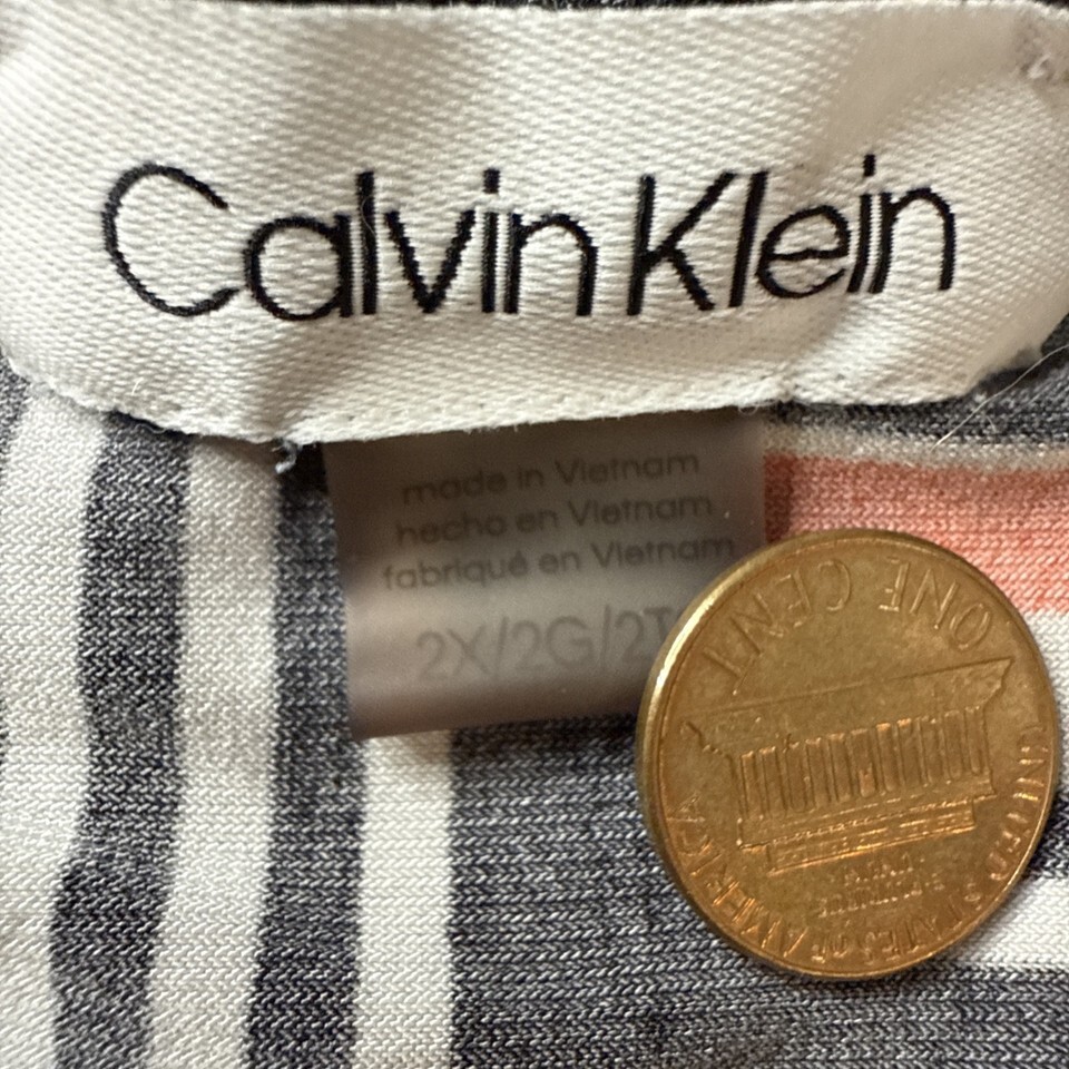 Calvin Klein Sleeveless Deep Neckline Striped Blouse Top Size 2X Women