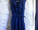 - Calvin Klein Womens Sz 8 Sleeveless Dress Blue Ruffles Cinched Waist Belt A-line