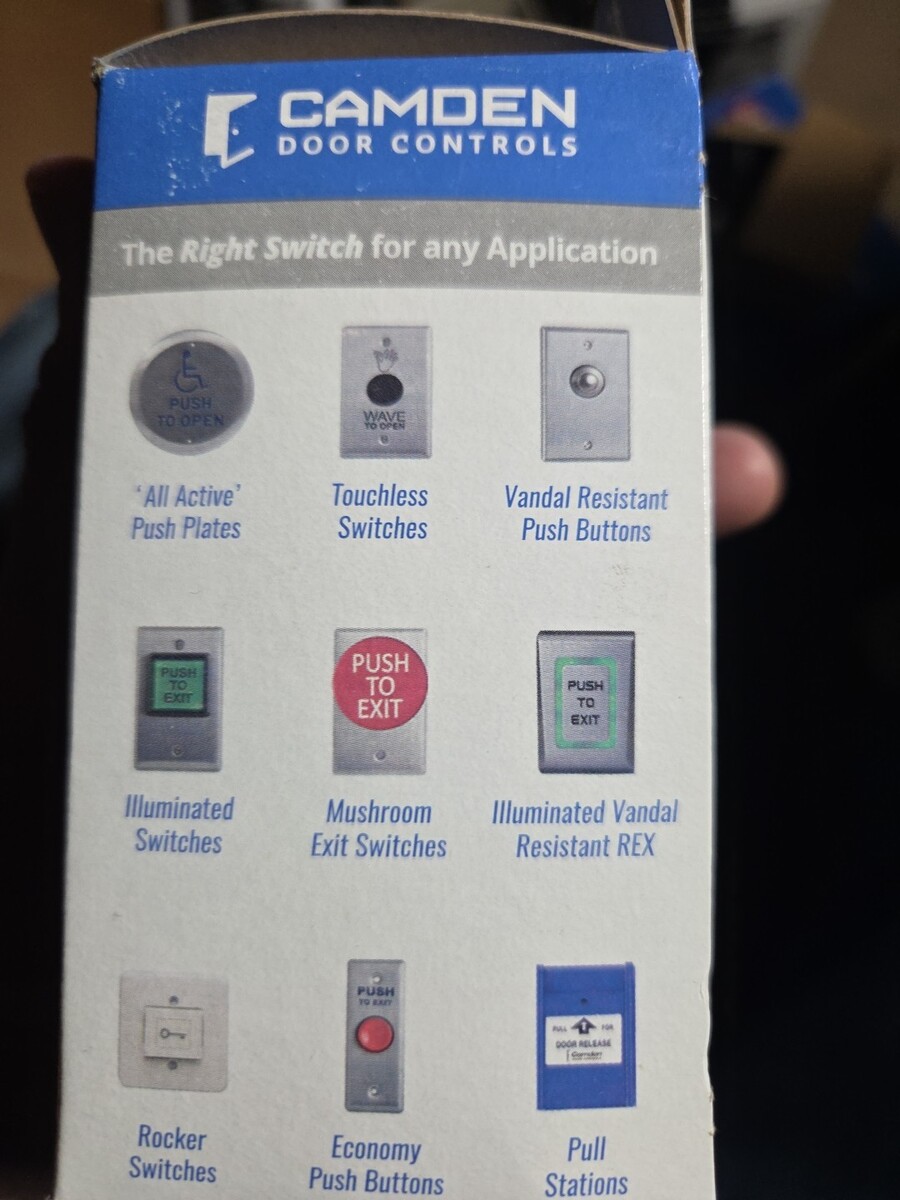 - Camden CM-9080 Push / Exit Vandal Resistant Switch Single Gang