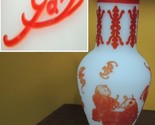 - Cameo Glass Vase 12" Red Chinese Art boys bats hand cut design signed Galle